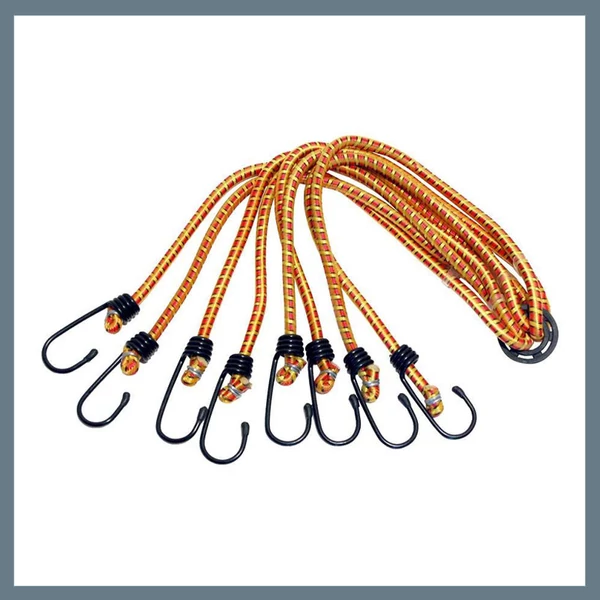 Prémium minőségű, rugalmas gumipók fémkampókkal. Egyedi kialakításának köszönhetően a 4 különálló, 80 cm hosszú rögzítőpánt egy központi gyűrűhöz csatlakozik, így összesen 8 rögzítési pontot biztosít.