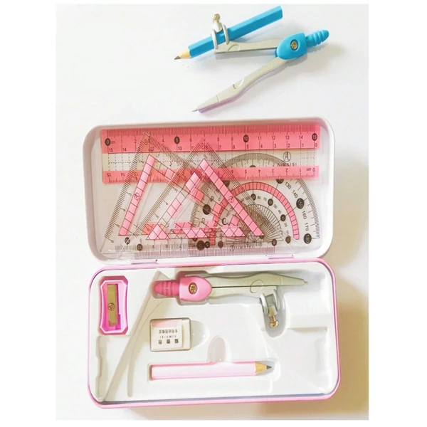 Ez a praktikus készlet megbízható, tartós és minden fontos eszközt tartalmaz a pontos és rendezett geometriai munkához.