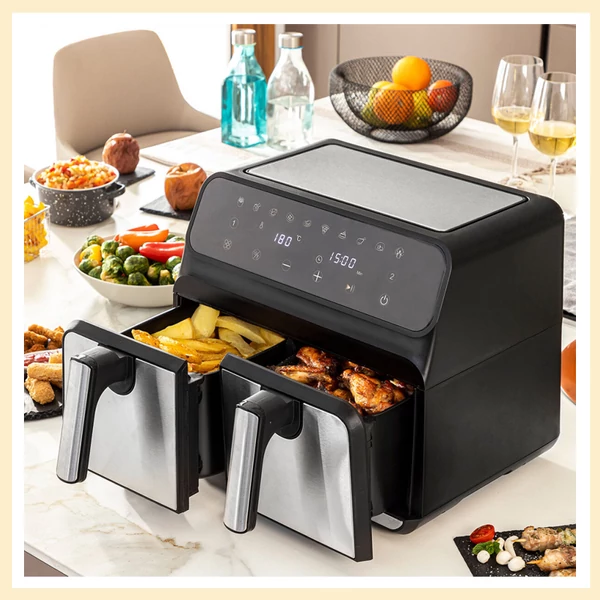 - Dupla levegős sütő 8 L (4L + 4L) és 3400W (1700W + 1700W).