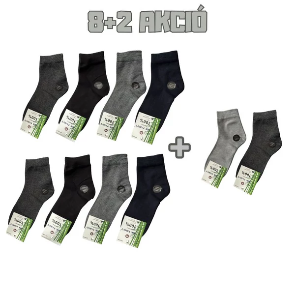 Az 8+2 akciós csomag 10 pár bambuszszálas zoknit tartalmaz, amely hosszú távra biztosítja a kényelmes viseletet. A zoknik rugalmasak, légáteresztők és varrás nélküli kialakításuknak köszönhetően nem irritálják a lábat. Tökéletes választás mindennapi használatra, munkába vagy szabadidős tevékenységekhez.