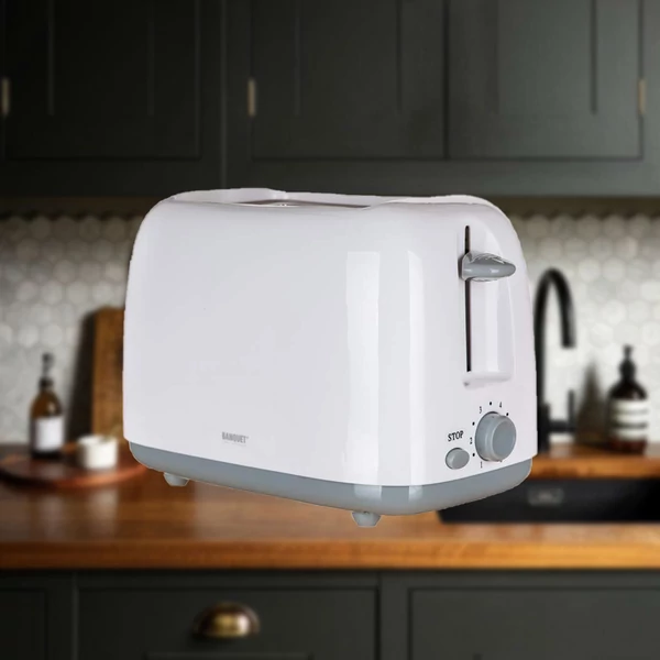 A 750 W teljesítményű, két pirítósra alkalmas 6 fokozattal, automatikus kikapcsolással, a pirítás azonnali leállítására szolgáló gombbal.