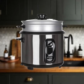 A teljesen automatikus működésű rizsfőző minden fajta rizs elkészítésére alkalmas, beleértve a sushi rizst is. Főzés után az edény automatikusan kikapcsol, és átvált a Keep Warm funkcióra, amely akár több órán keresztül is melegen tartja a rizst. A csomag tartalmaz egy mérőpoharat, amely a készülék egyszerű töltésére szolgál, egy merőkanál, valamint egy tartozék a hal vagy zöldség gőzben történő elkészítéséhez. A belső tartály speciális tapadásmentes felülettel rendelkezik, amely nemcsak a használatot, hanem a tisztítást is megkönnyíti. A rizsfőző üvegtetővel, lyukkal a felesleges gőz elvezetéséhez, mindkét oldalán praktikus fogantyúkkal, a működést és a hőmérséklet fenntartását szolgáló fényjelzőkkel, valamint csúszásmentes lábakkal rendelkezik.