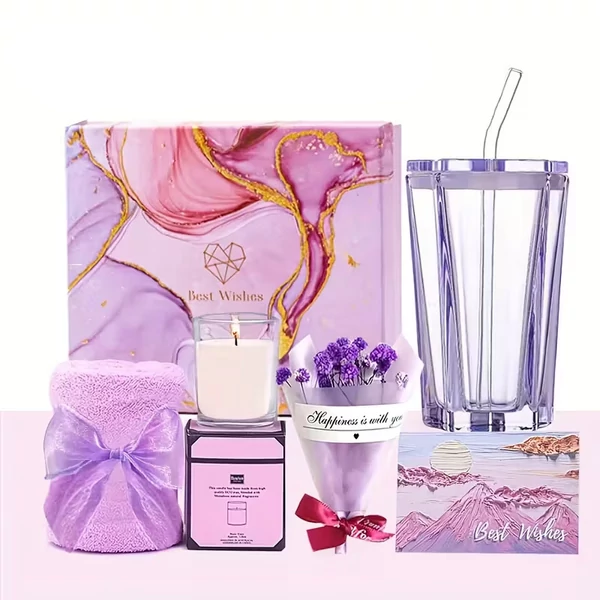 Ez az elegáns, lila árnyalatú ajándékcsomag tökéletes meglepetés nőknek bármilyen alkalomra. A gondosan összeállított kiegészítők a kikapcsolódást, a mindennapi kényelmet és a jó hangulatot szolgálják. A stílusos díszdoboz különleges megjelenést kölcsönöz az ajándéknak.