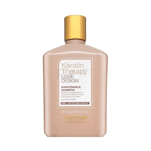 Az Alfaparf Milano Lisse Design Keratin Therapy Maintenance Shampoo egy professzionális sampon, amelyet kifejezetten a keratinos hajsimító kezelések utáni ápolásra fejlesztettek ki. Segít megőrizni a kezelés simító és fényfokozó hatását, miközben gyengéden tisztítja a hajat, anélkül hogy kiszárítaná vagy károsítaná annak szerkezetét.
