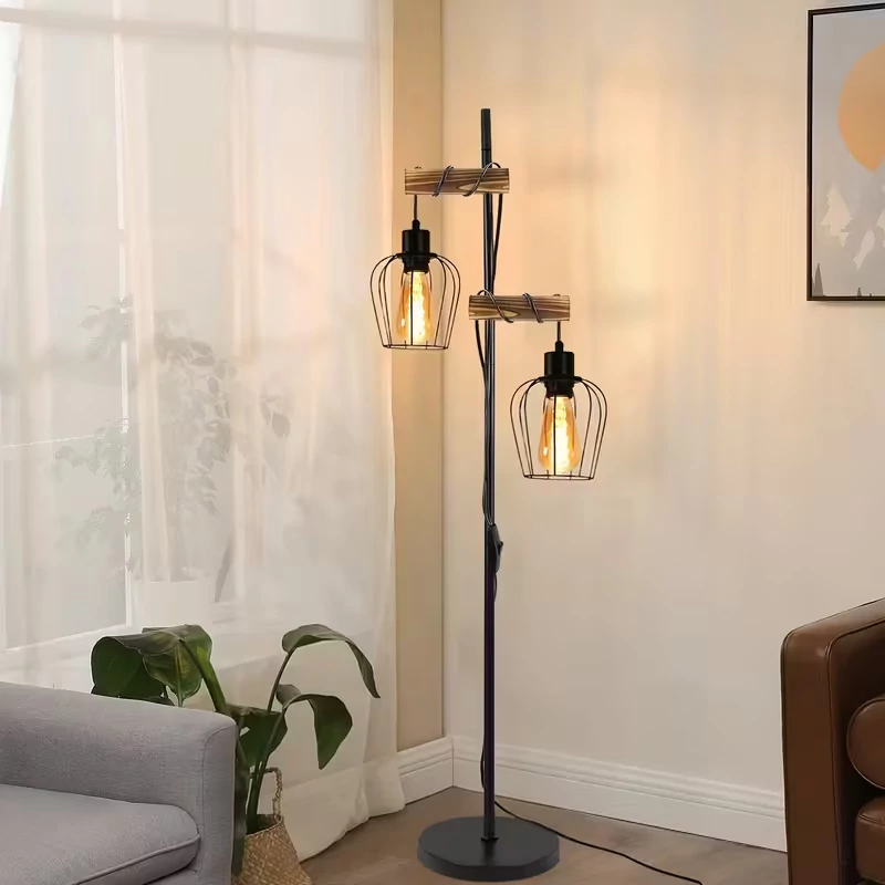 Ez a modern és rusztikus hangulatot ötvöző állólámpa különleges kiegészítője lehet otthonának. A fekete fém vázhoz rögzített fa tartórudakról két fémrácsos burkolattal ellátott lámpatest függ, melyek Edison stílusú izzóval meleg, barátságos fényt sugároznak. Stabil kerek talapzata biztonságos elhelyezést biztosít, így nappaliban, hálószobában vagy dolgozószobában is ideális választás.