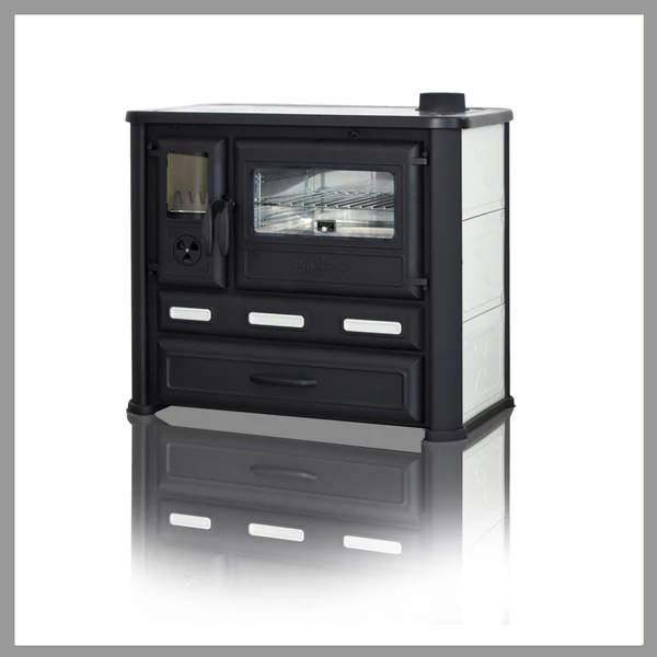 Exkluzív, elegáns formájú rusztikus fa tüzelésű fűtő és sütő-főző készülék. Klasszikus design, kiváló teljesítmény. Oldalt fehér zománcozott borítású a tűzhely, a sütője belül inox. Jobbos füstcső kivezetéssel rendelkezik a termék. A sütő mérete: 445x410x220mm