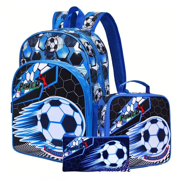 Általános Iskolai Futball Mintás Hátizsák – 3 Részes Szett Fiúknak EL3681211