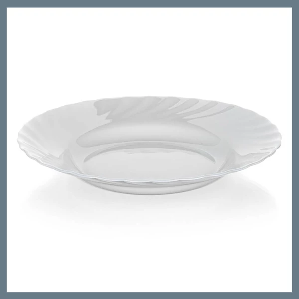 Elegáns és strapabíró kialakítású, ideális különféle ételek tálalására. Fehér edzett üvegből készült, amely mikrohullámú sütőben és mosogatógépben is biztonságosan használható.