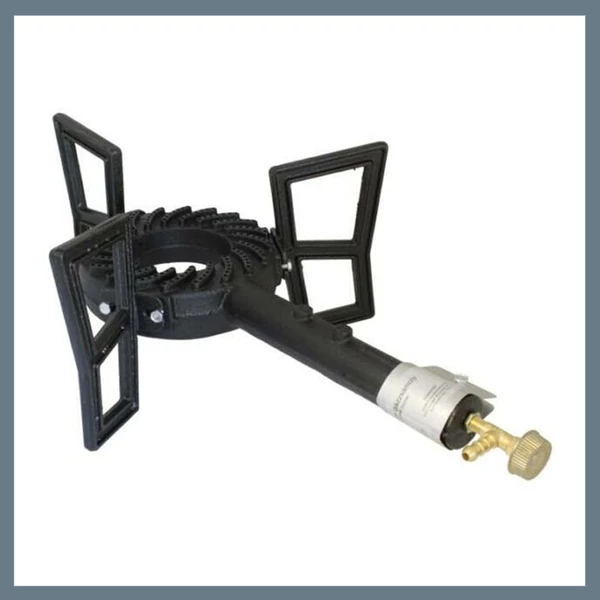 Öntvény gázzsámoly, öntöttvas test és tartólábak, fekete hőálló festéssel.