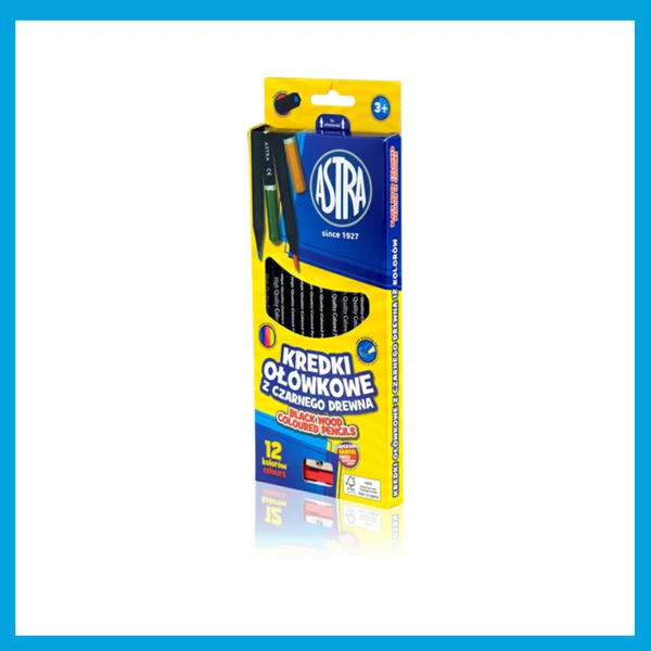 Astra Színes ceruza készlet fekete fa hatszögletű 12 ajándék hegyezővel 312114001