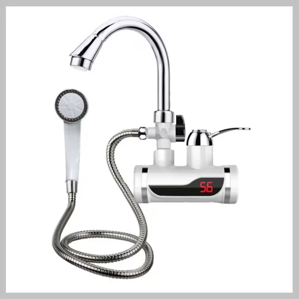 Átfolyó vízmelegítő csaptelep zuhanyfejjel