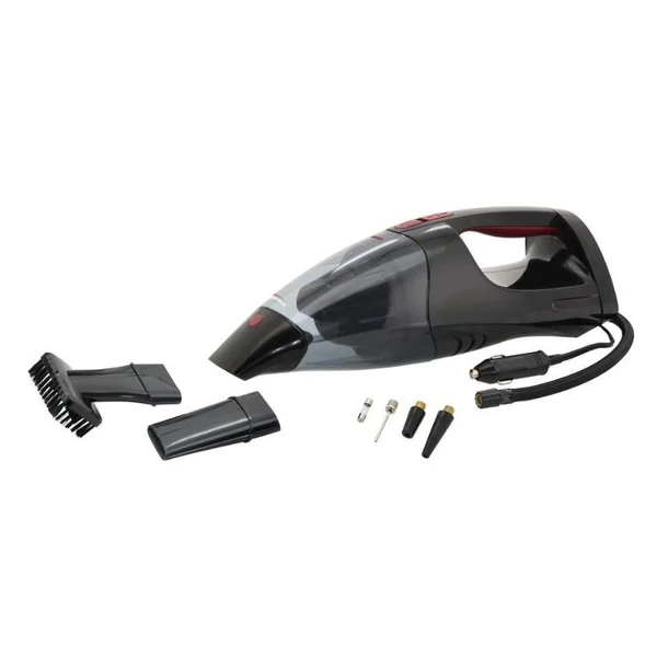 Ez a kombinált autós eszköz egyesíti a légkompresszor és a kézi porszívó előnyeit, így ideális társ az autó mindennapos karbantartásához. A készülék 12V-os szivargyújtóról működtethető, hosszú, 280 cm-es tápkábelének köszönhetően pedig a jármű minden pontját kényelmesen elérhetjük vele.