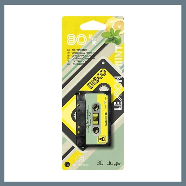 Egyedi megjelenést és frissítő illatot kölcsönöz járműve belső terének. A kazetta alakú design nosztalgikus hangulatot idéz, miközben a citrom illat frissességet biztosít. A termék gumiszalaggal könnyen rögzíthető a visszapillantó tükör alá. A légfrissítő semlegesíti a kellemetlen szagokat, hosszan tartó frissességet nyújtva az autóban.