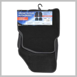 Precíz textil autószőnyegek Škoda Fabia I-hez, 2000-től gyártott modellekhez. A készlet 4 darabból áll (2 db elölre, 2 db hátulra). Fekete kivitel szürke szegéllyel és szürke erősítéssel a vezetőoldali szőnyegen a pedálok alatt.