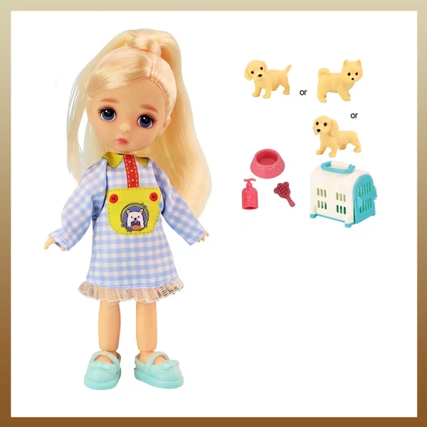 Baba és kutya készlet. A baba mérete 12,5 cm. Mozgatható ízületek. Csomag tartalma: