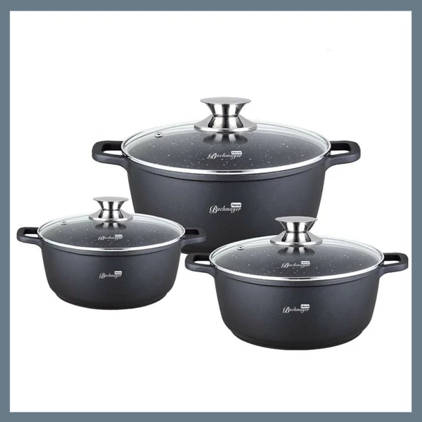 Bachmayer 3 részes márvány bevonatú lábas készlet szürke BM-7872