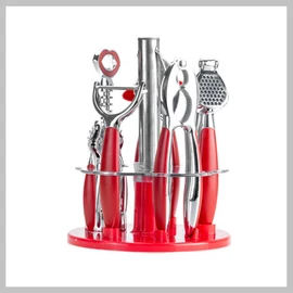 • dugóhúzó, zöldséghámozó, diótörő, fokhagymanyomó, konzervnyitó, állvány
