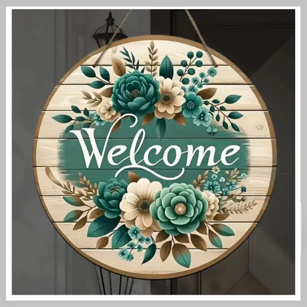 Teremts meleg és barátságos hangulatot otthonodban vagy irodádban ezzel a bájos fa üdvözlő táblával, amely kerek kialakításának és virágos mintájának köszönhetően tökéletes dekoráció minden térbe. A természetes fa alap és a finoman kidolgozott részletek elegáns és otthonos megjelenést kölcsönöznek.