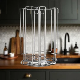 Az acélból készült LINEA Tassimo kávékapszula állvány praktikus segítőtárs a kapszulák tárolásához. Az állvány forgatható és 52 Tassimo kávékapszula tárolására alkalmas. A kapszulákat újratöltjük és levesszük az állvány aljáról. Méretek: 18,5 x 18,5 x 24,5 cm.
