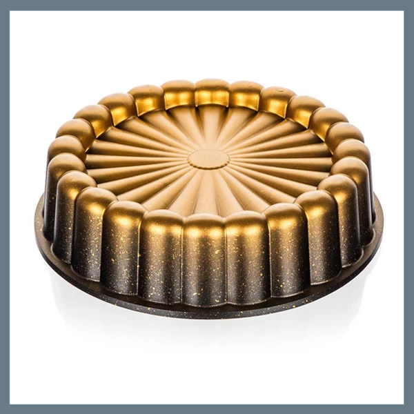 A sütőforma 2,7 literes űrtartalommal rendelkezik, amely elegendő helyet biztosít a tésztának a megfelelő megkeléséhez és süléséhez. A fekete-arany színkombináció és a granite dekoráció modern megjelenést kölcsönöz a konyhának. Az alumínium anyag gyors és egyenletes hőeloszlást biztosít, így tökéletes eredményeket érhet el minden alkalommal.