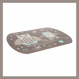A 39 x 28 cm méretű, baglyos dekorral díszített parafa asztalterítő praktikus és dekoratív természetes anyagból készült szőnyeg, nem csak étkezőasztalhoz.
