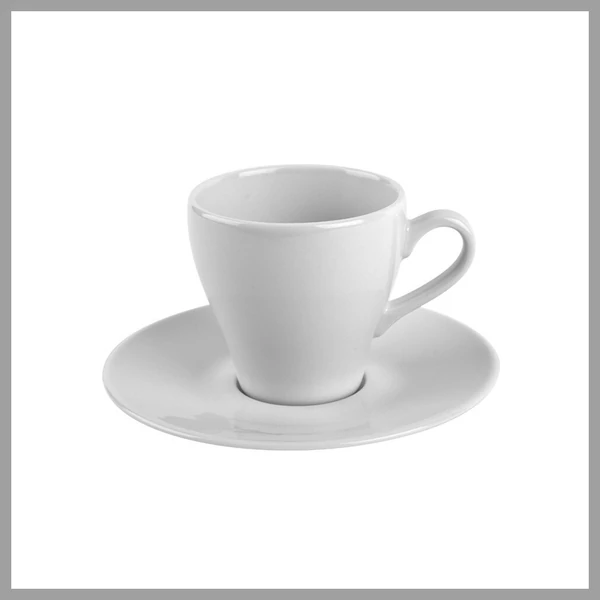 Csésze és csészealj ALBA 150 ml, anyaga - porcelán fehér mázzal, a csésze felső átmérője 8 cm, alsó átmérője 4,7 cm, magassága 7,5 cm, a csészealj átmérője 13,7 cm. A kanál vendéglátóipari használatra is alkalmas, mosogatógépben is mosható.