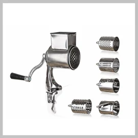 Az univerzális rozsdamentes acél daráló alkalmas diófélék, csokoládé, zöldségek, gyümölcsök reszelésére és kemény sajtok szeletelésére. A csomag 5 tartozékot tartalmaz, amelyek megkönnyítik az ételek reszelését és szeletelését. A reszelő a biztonság érdekében tolóval van felszerelve