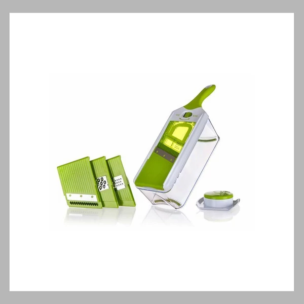 A CULINARIA 7 részes univerzális szeletelő sokoldalú segítség a konyhában. A csomag tartalma: 1 db fogantyús fedél, 1 db aprított ételtartó, 1 db szeletelő, 1 db julienne szeletelő, 1 db reszelő, 1 db finomreszelő, 1 db védő.