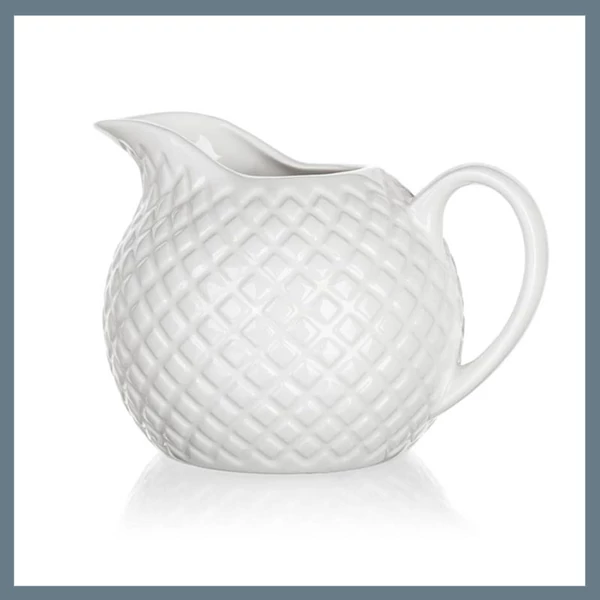 A BANQUET DIAMOND LINE kerámia tejszínkiöntő elegáns, dombornyomott mintázattal rendelkezik, amely stílusos és kifinomult megjelenést kölcsönöz az asztalterítésnek. Méretének (11,7 x 7,5 cm) köszönhetően ideális tej, tejszín vagy egyéb folyadékok felszolgálására.