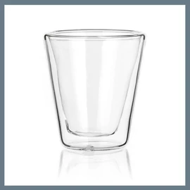 A BANQUET DOBLO pohár modern és elegáns kialakítású, tökéletes választás espresso kávé vagy más röviditalok stílusos felszolgálásához. A dupla falú kialakítás nemcsak hőszigetelést biztosít, hanem megakadályozza az ital gyors kihűlését, illetve védi a kezet a forróságtól.