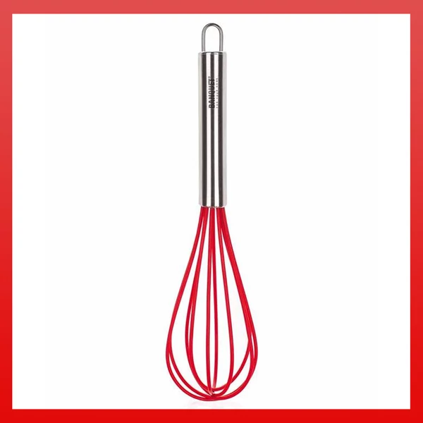 Szilikon habverő 30 cm RED CULINARIA, anyaga: rozsdamentes acél 430 (18 / 0), 5 vezeték (vastagság 1,40 mm), szilikon bevonat. A habverővel különösebb erőfeszítés nélkül habosíthat fel tejet, habtejszínt vagy tojásfehérjét, vagy keverhet omlettet.