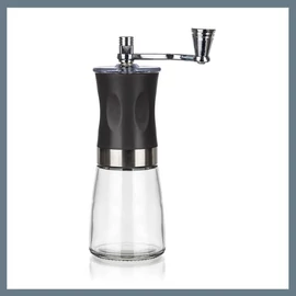 Mechanikus kávédaráló fekete kivitelben, üvegtárolóval rendelkezik. Az őrlő belső mechanizmusa kerámiából készült, és lehetőséget biztosít az őrlés finomságának beállítására. A kávéőrölő segítségével mindig frissen őrölt kávét élvezhetsz. A készülék magassága 19 cm, az alapterület átmérője 6,5 cm.