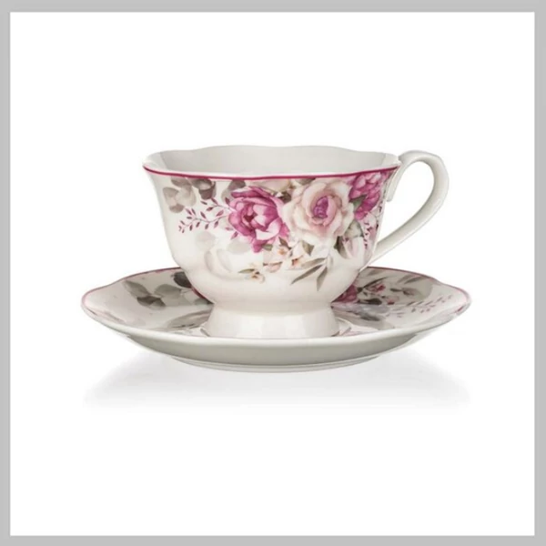 A gyönyörű virágmintás Rose csésze és csészealj alkalmas kávé vagy tea felszolgálására a mindennapokban és ünnepi alkalmakkor egyaránt. A csésze és a csészealj mikrohullámú sütőben és mosogatógépben mosható. Ezzel a díszítéssel más termékeket is vásárolhat, hogy gyönyörű tálalószettet alkothasson.