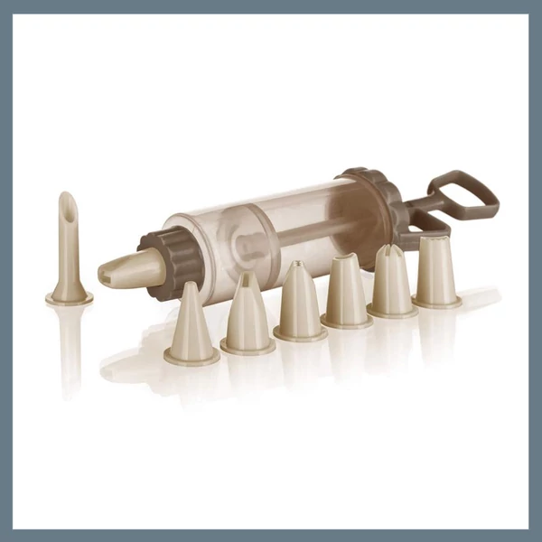 A BANQUET CULINARIA műanyag habnyomó szett 8 különböző szórófejet tartalmaz, amelyek segítségével könnyedén díszítheted a süteményeket és egyéb édességeket. A szett praktikus és tartós műanyagból készült, és tökéletes eszköz a különböző minták és formák létrehozásához. A dugattyús kialakítás lehetővé teszi a könnyű használatot és precíz irányítást a díszítés során.