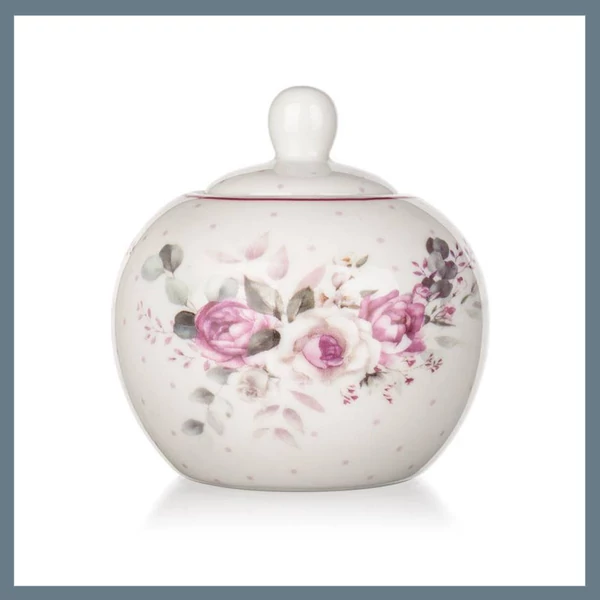 A BANQUET ROSE kerámia cukortartó elegáns rózsamintás dekorációval rendelkezik, amely tökéletes kiegészítője lehet a kávé- és teázási alkalmaknak, akár hétköznapi, akár ünnepi eseményeken. Űrtartalma 280 ml, így ideális cukor, édesítőszer vagy más konyhai alapanyagok tárolására.
