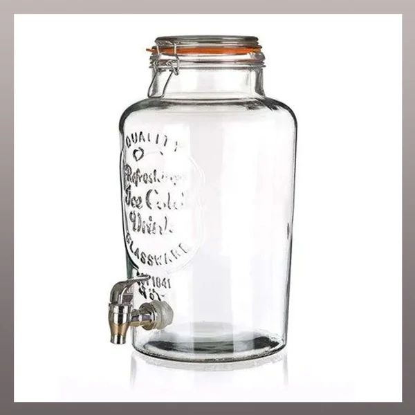 Üvegkanna italokra 7 liter űrtartalommal üdítőitalok felszolgálására ünnepségeken és különböző nyári partikon.
