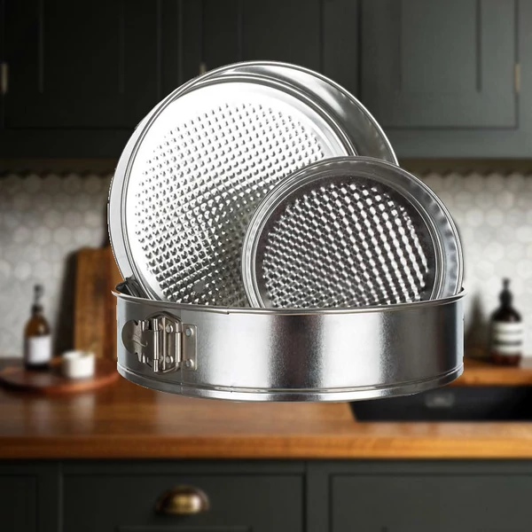 3 részes tortaforma készlet 16, 24 és 28 cm átmérőjű. Kiválóan alkalmas édes és sós ételek sütésére. A formák alkalmasak elektromos, gáz és légkeveréses sütőkhöz. Az ónlemez rendkívül ellenálló anyag. Lehetőség van fém edények használatára is Mindhárom forma összecsukható.