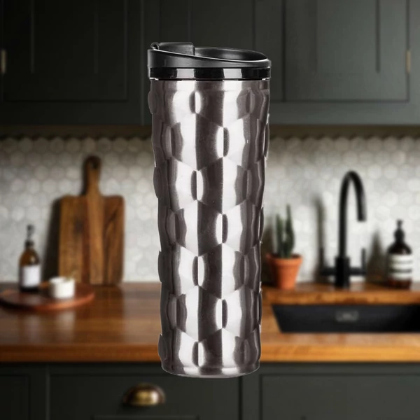 A 450 ml-es duplafalú OASE termosz meleg és hideg italok tárolására alkalmas. A bögre külső és belső része kiváló minőségű rozsdamentes acél, kupakja műanyag. A bögre nem mosogatógépben mosható. A duplafalú kialakításnak köszönhetően az ital hosszabb ideig marad a kívánt hőmérsékleten.
