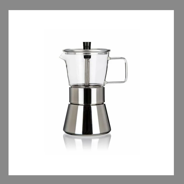 A TRISHA 4 csésze kávéfőző egy hagyományos kávéfőző az ízletes erős kávé otthoni elkészítéséhez. Gáz-, elektromos-, üvegkerámia és indukciós főzőlapokon használható. A kávéfőző biztonsági szeleppel van felszerelve. Felhasználható térfogat 200 ml.