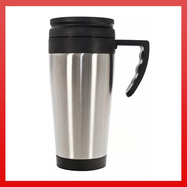 Duplafalú utazóbögre AKCENT 450 ml rozsdamentes acél, a bögre külső héja 201-es rozsdamentes acél, belső része műanyag. A termosz bögre 2 órán át melegen tartja az italokat. Felhasználható térfogat 450 ml.