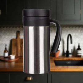 A Banquet GREG utazó bögre meleg és hideg italokhoz egyaránt alkalmas. Belső és külső felülete rozsdamentes acélból, a fedele pedig műanyagból készült. Értékelni fogod munkába menet vagy kiránduláson, ahol nyugodtan élvezheted a kedvenc italod. A dupla falú kivitelének köszönhetően az ital hosszabb ideig megtartja a hőmérsékletét.
