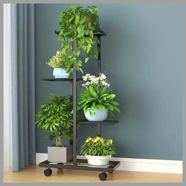 A virágtartó négy különböző szinten kínál elhelyezési lehetőséget különböző méretű növények számára. Az alsó részén található kerekek segítségével könnyen mozgatható, így egyszerűen áthelyezhető a kívánt helyre – legyen az beltér vagy kültér.
