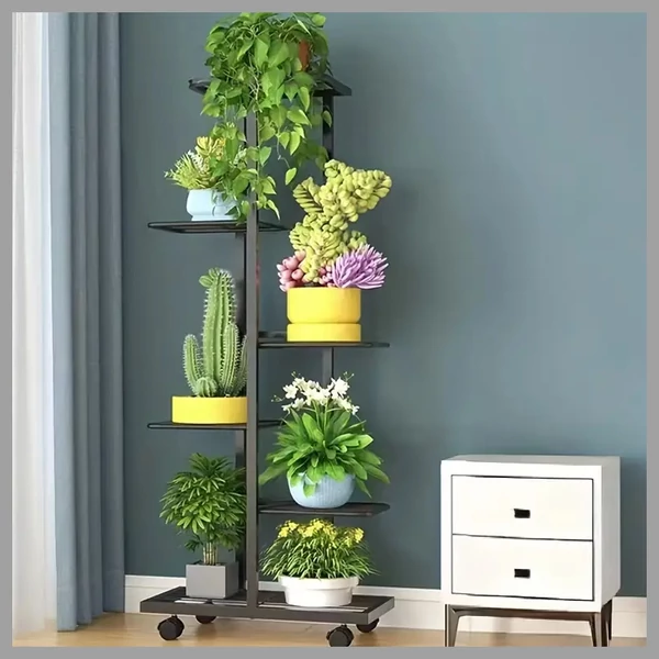 Ez a 6 szintes fém virágtartó ideális választás mindazok számára, akik egyszerre szeretnék növényeiket rendszerezni és dekoratív módon elhelyezni. A modern fekete porszórt fémváz elegáns megjelenést biztosít, míg a masszív szerkezet tartós használatot garantál, akár beltéren, akár kültéren.