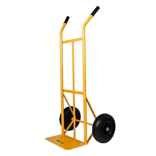 Ez a masszív, acélvázas kézi szállítókocsi ideális választás nehéz tárgyak, dobozok vagy háztartási gépek mozgatásához. Stabil szerkezete és felfújható kerekei biztosítják a könnyű kezelhetőséget és a hosszú élettartamot.