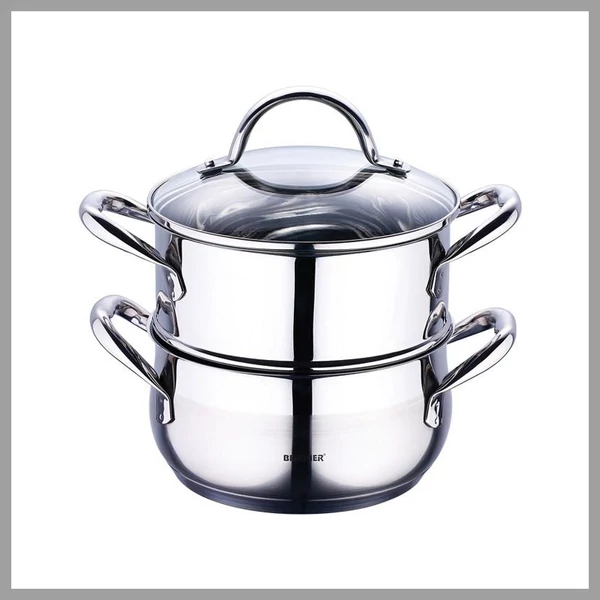 A Bergner GOURMET 2.2l pároló tökéletes segítőtárs a konyhába. Alkalmas mindennapi használatra. A készlet tartalmaz fazekat és párolót, mindkettő 18 × 9 cm-es méretben. A pároló rozsdamentes acélból készült, amely minőségi és ellenálló. A Bergner fazék használható gáz, elektromos, üvegkerámiás vagy indukciós tűzhelyen.