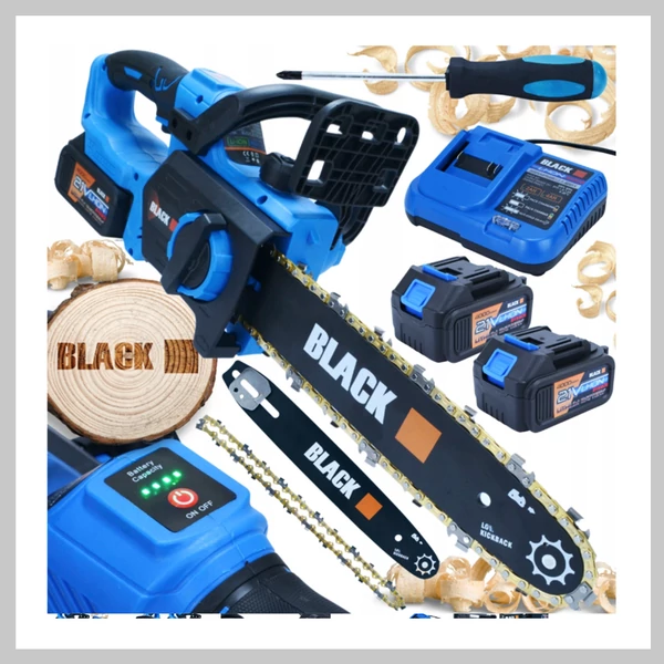 BLACK Akkumulátoros láncfűrész fa vágására, 2 x 21V, 4Ah, 30 cm 53740
