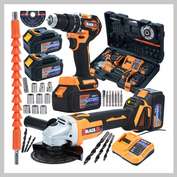 Ez a sokoldalú 2 az 1-ben szerszámkészlet a BLACK márkától magában foglal egy sarokcsiszolót és egy ütvefúró-csavarozót, amelyek ideálisak bármilyen barkács- vagy építési munkához. A készlet két darab nagy kapacitású 4Ah akkumulátorral érkezik, amelyek biztosítják a hosszú üzemidőt és megbízható teljesítményt.