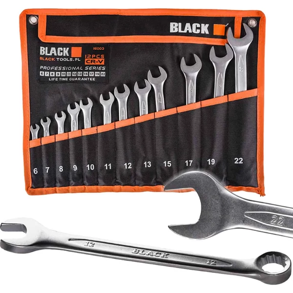 Black csillag villás kulcs készlet 12db-os matt, vászon táskában - 16003