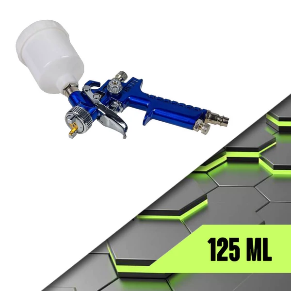 A festék, és a levegő mennyisége is szabályozható. A tartály 125 ml-es űrtartalommal rendelkezik – ez az arany középút, hogy ne kelljen gyakran tölteni a festéket, de a pisztoly se legyen nehéz.