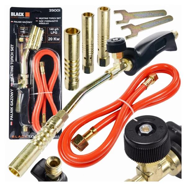 Ez a praktikus gázpalackos forrasztó- és melegítőégő kiváló választás forrasztáshoz, hőkezelési munkákhoz, festék vagy rozsda eltávolításához, valamint fagyott csövek és szerelvények kiolvasztásához. Propán-bután gázpalackhoz csatlakoztatható, és nagy teljesítményének köszönhetően akár 1850 °C lánghőmérsékletet is elér. A készlet ergonomikus fogantyúval rendelkezik, amely lehetővé teszi a gázáramlás pontos szabályozását.